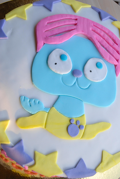 Mi primera tarta infantil... le he cogido el tranquillo y ya he hecho unas cuántas! jajaja. Lo mejor, descubrir los Littlest Pet Shop: esa variedad infinita de mascotas hace que te enamores seguro de alguna de ellas. Mi favorita, esta foca playera con gafas de sol nada discretas.