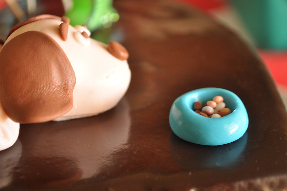 Modelar el perro me sorprendió, porque a mí, que sin regla o compás no se me dan demasiado bien las manualidades, lo hice a la primera. Mi madre enganchada al teléfono, y yo, con todo ese fondant delante de mis ojos... ¿por qué no intentarlo? Pues me encantó el resultado y la experiencia. No lo digo ni mucho menos por echarme flores, sino porque, como bien sabréis, muchas veces no nos aventuramos a hacer cosas porque parecen de un difícil... y luego, NO lo son.